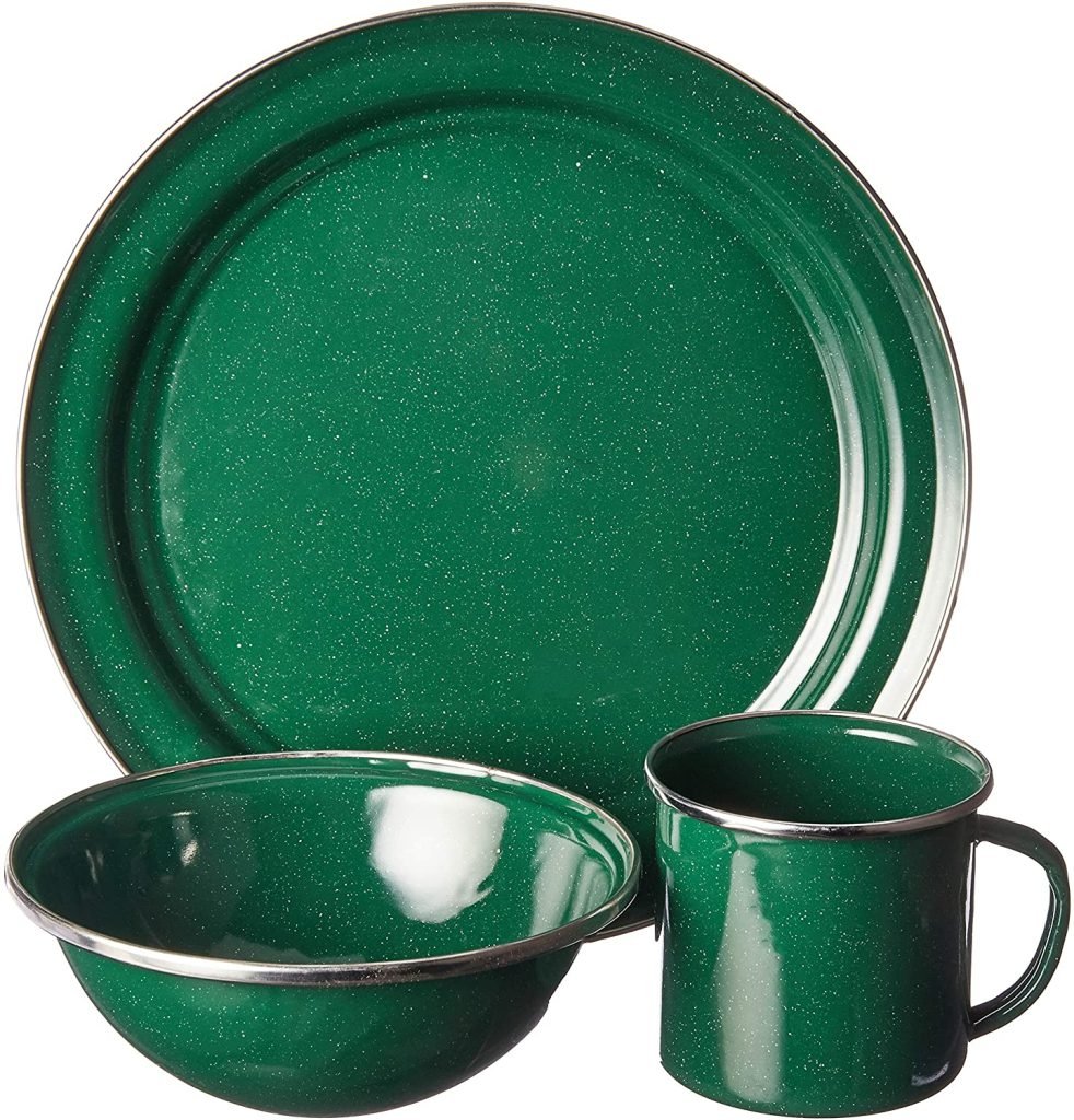 Green is the color of nature. From the leaves of multiple trees to the pleasant meadows and even the swamp grass. So why not match your nature expedition with the majestic emerald-colored Stansport Deluxe Enamel Tableware Set?