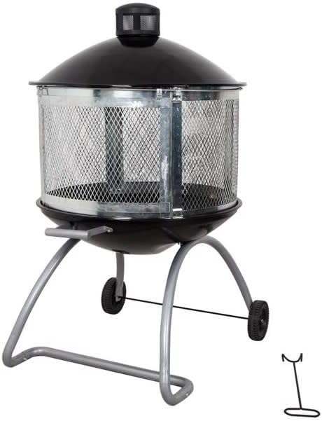 This portable fire pit with wheels is another stainless steel variant. It’s similar in aesthetics and size as the others. As the name suggests, the 28” bowl is well manufactured using high quality porcelain enamel. The lid is also made using porcelain. It contains a galvanized steel spark screen which allows visibility whilst keeping the fire maimed and tamed.